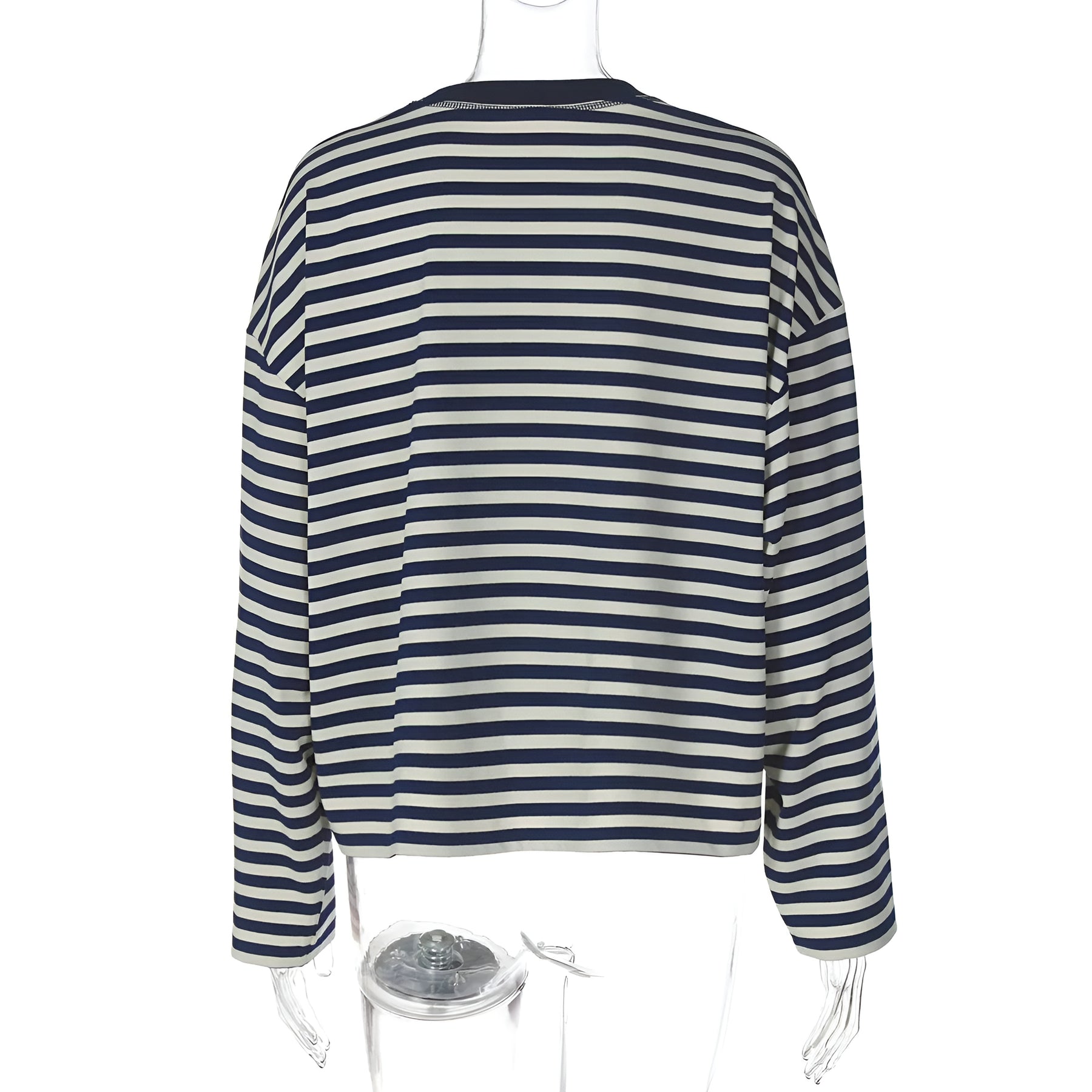 Élégance Rayée™ – T-shirt Loose à Manches Longues avec Col Rond