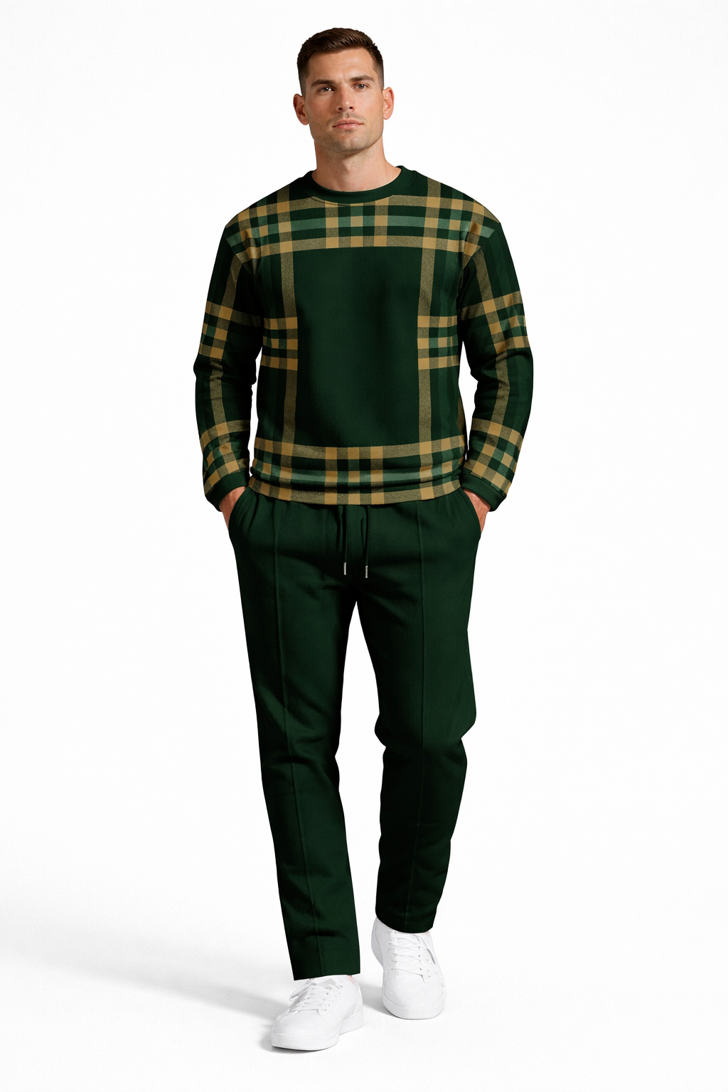 Le motif à carreaux, retravaillé avec précision, exprime un style maîtrisé et distinctif — idéal pour l’homme en quête d’une présence naturelle et assurée.