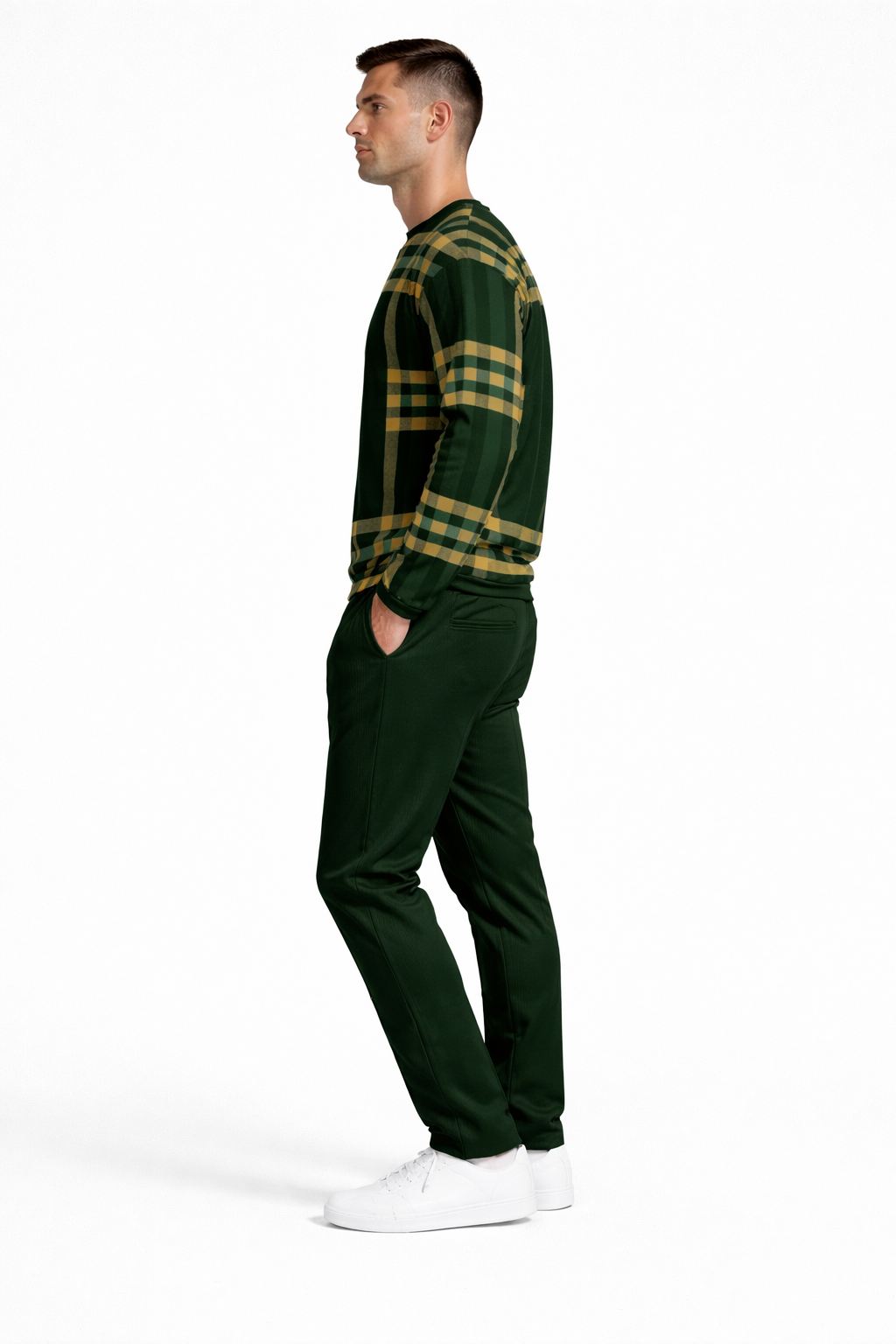 Alliance parfaite entre tradition et modernité, cet ensemble SAINT-CLAIR™ se distingue par son motif à carreaux revisité et par une élégance sport chic sophistiquée.