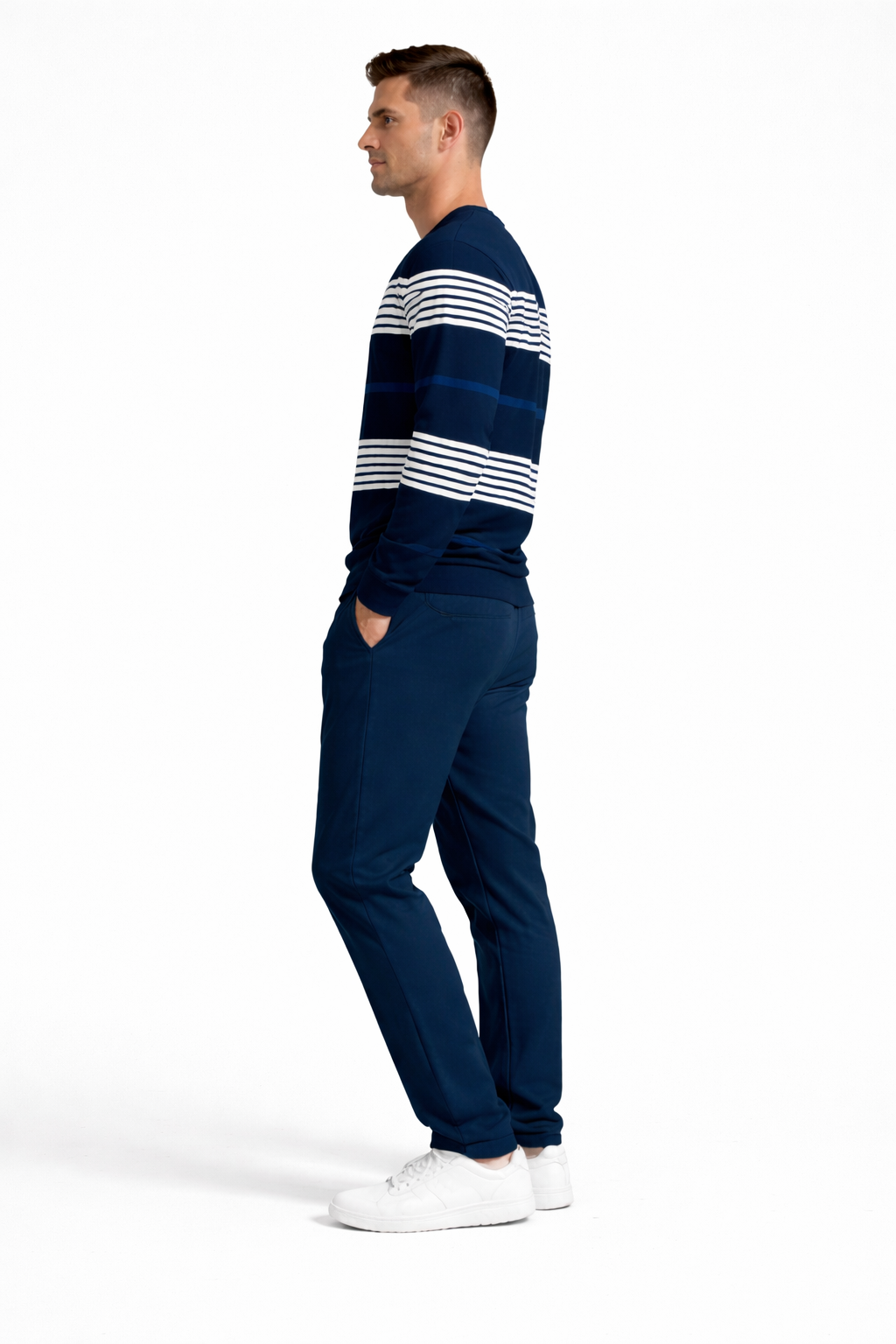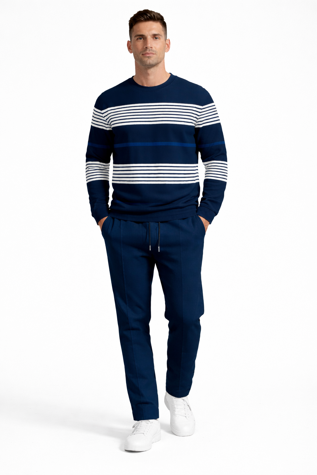 Inspiré du style nautique revisité, cet ensemble VÉRACÉ™ allie fraîcheur, équilibre et sophistication dans une interprétation urbaine du sport chic.